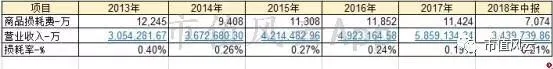 在运营费用中,有一项单独列示的“商品损耗费”,根据计算的商品损耗率,永辉的商品损耗率不到1%,而且从2013年以来,商品损耗率从0.4%下降至0.2%。