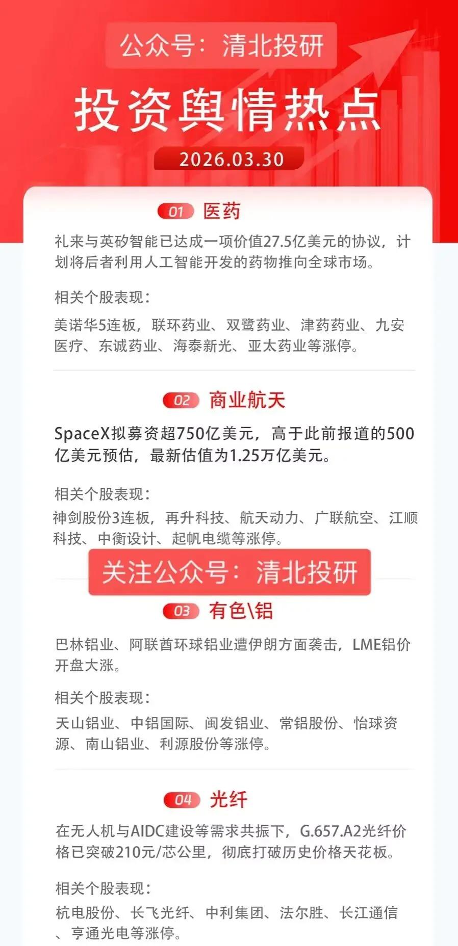 周二关注方向:医药+商业航天+有色铝+光纤