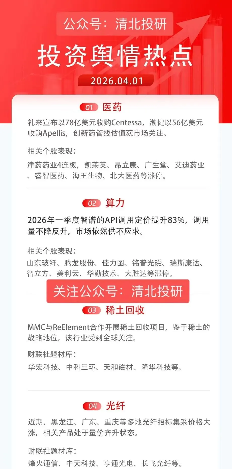 周四关注方向:医药+算力+稀土+光纤