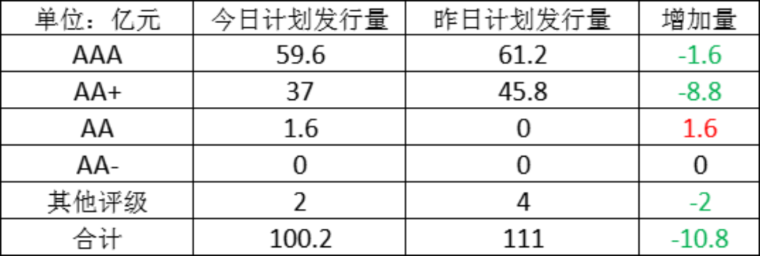 今日存单计划发行量规100.2亿元,较上一工作日计划发行量有所减少,减少了10.8亿元。