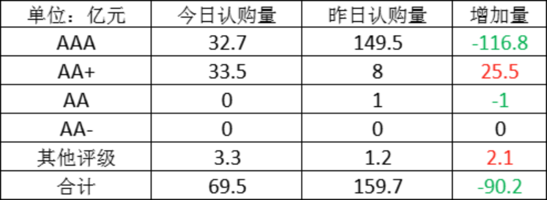 今日存单认购量规模69.5亿元,较上一工作日认购量有所减少,减少了90.2亿元。