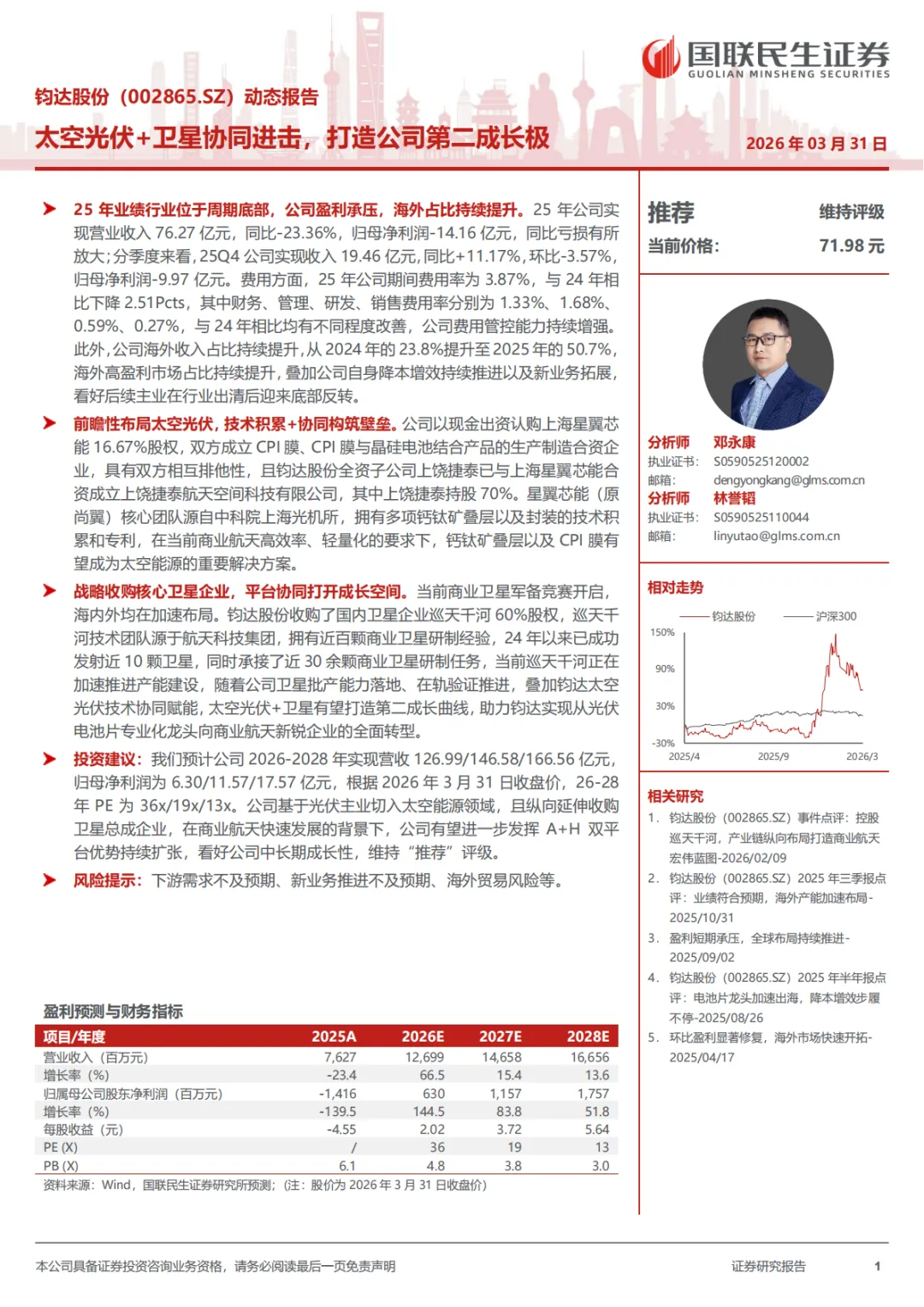 『研报』钧达股份-002865-动态报告:太空光伏+卫星协同进击,打造公司第二成长极