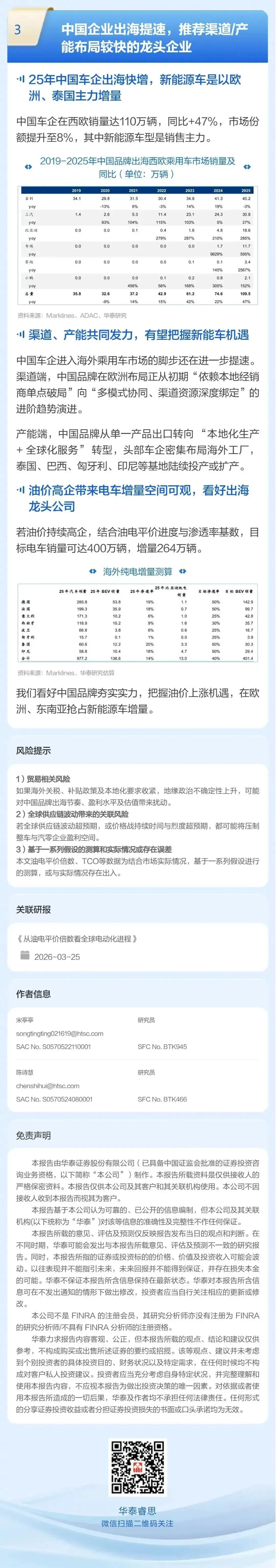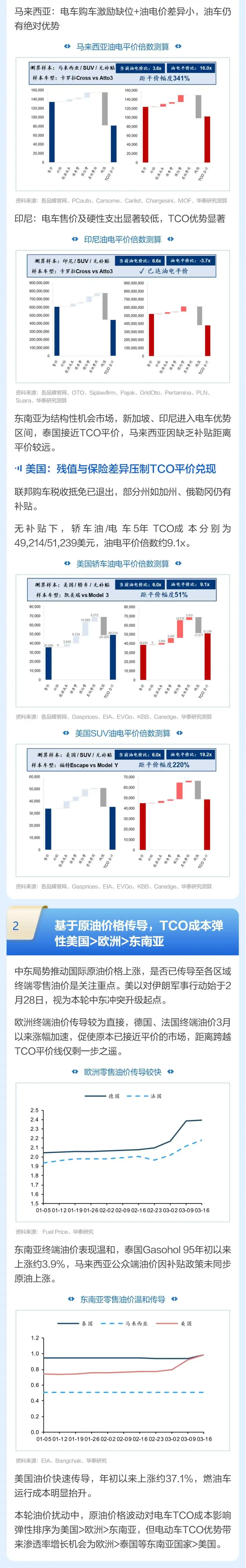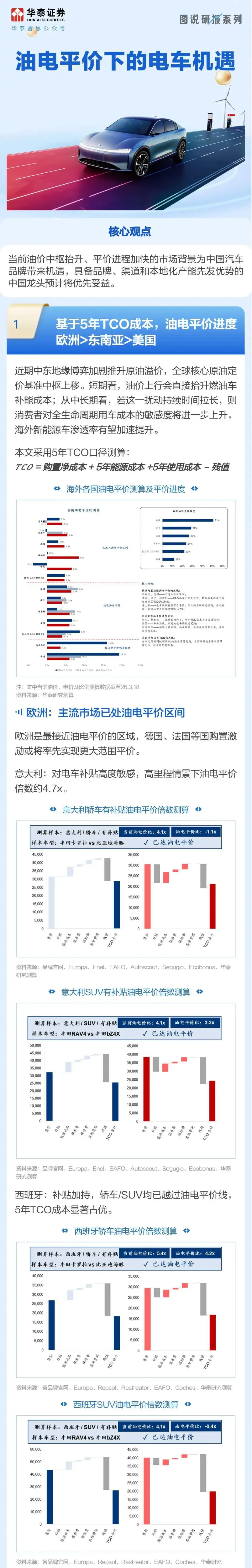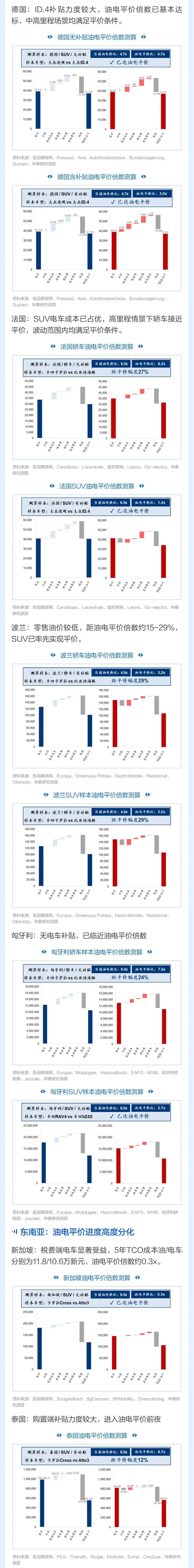 华泰 | 汽车:从油电平价倍数看全球电动化进程