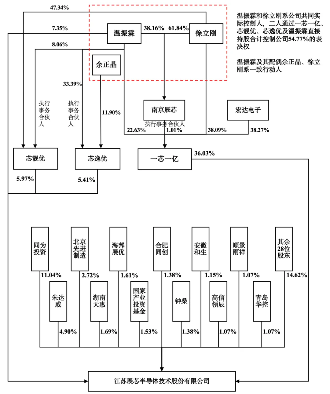截至招股说明书签署日,公司总股本为37006.99万股,股权结构较为分散但核心控制权集中。控股股东为南京一芯一亿创业投资合伙企业(有限合伙),直接持有公司36.03%的股权;温振霖、徐立刚为公司共同实际控制人,通过直接持股及间接控制控股股东、员工持股平台等方式,合计控制公司54.77%的表决权,对公司战略发展和日常运营具有重大影响。余正晶(温振霖配偶)为实际控制人之一致行动人。