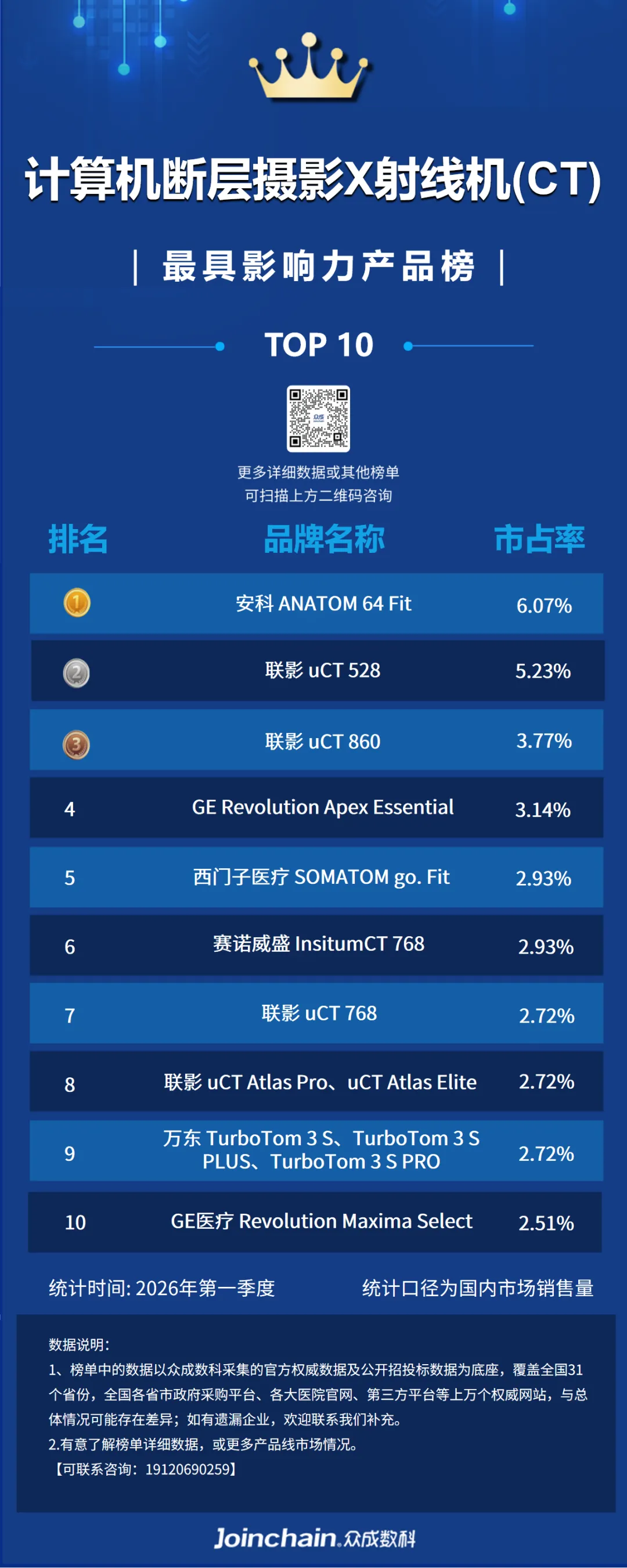 2026年第一季度计算机断层摄影X射线机(CT)产品榜