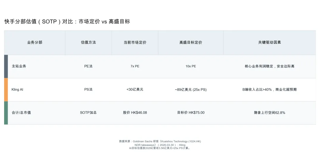 SOTP重估:目标价基于“主站估值修复 + Kling独立AI资产价值重估”。