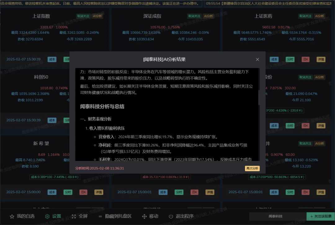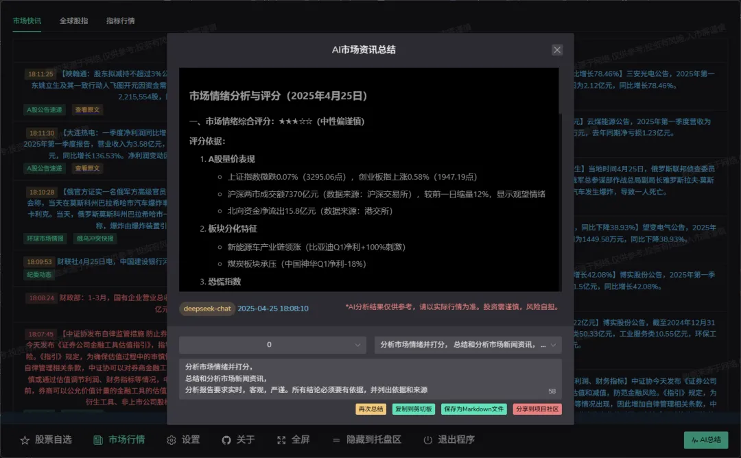 这种研报,券商收费几千一年才给你看,go-stock 接个免费的 DeepSeek API 就搞定了。