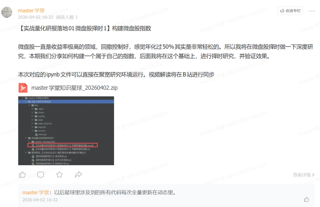 微盘股一直是收益率极高的领域,回撤控制好,感觉年化过50%其实是非常轻松的。所以我将在微盘股择时做一下深度研究,本期我们分享如何构建一个属于自己的指数,后面我将在这个基础上,进行择时研究,并验证效果。