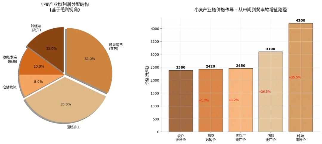 在小麦从田间到餐桌的价值链条中,利润分配呈现明显的”微笑曲线”特征:种植端和终端零售占据两端,但实际利润更多向加工和零售环节集中。