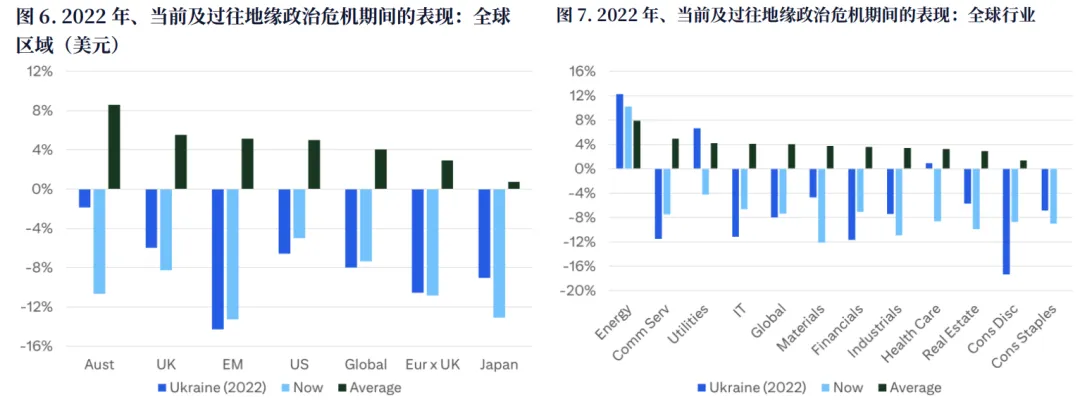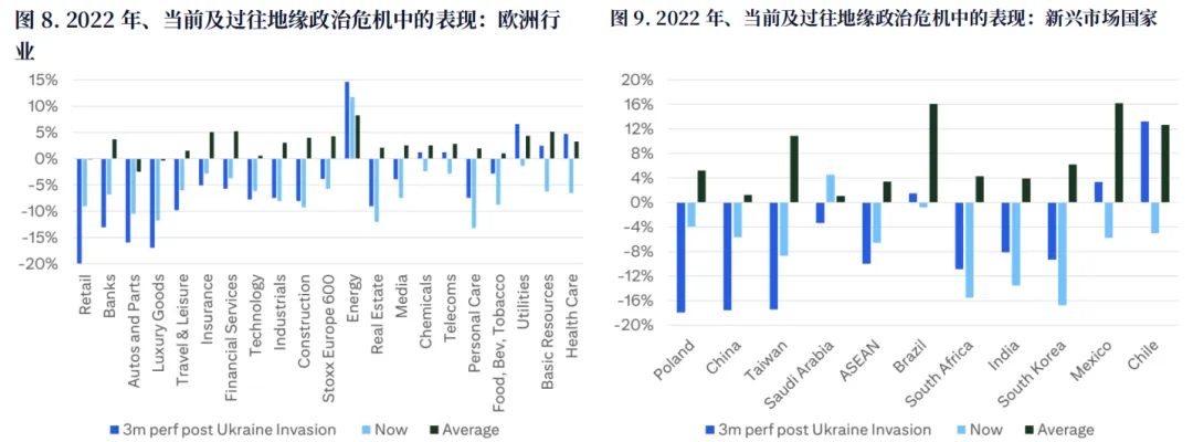 历史上鲜有滞胀冲击,其中 20 世纪 70 年代石油危机和 2022 年乌克兰战争是与当前局势及风险最为接近的类比。鉴于自 70 年代以来全球经济和股票市场的构成发生了快速变化,我们选择将 2022 年作为潜在的历史借鉴。