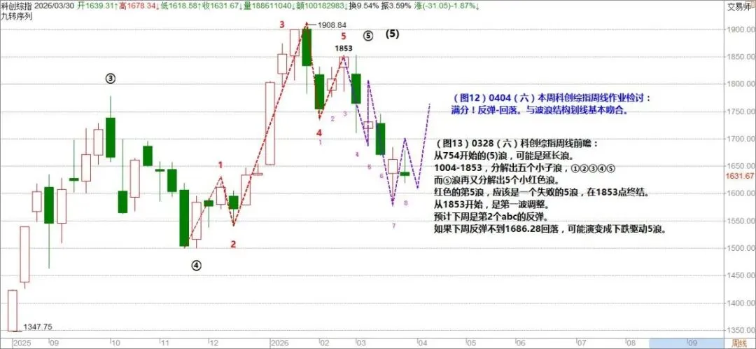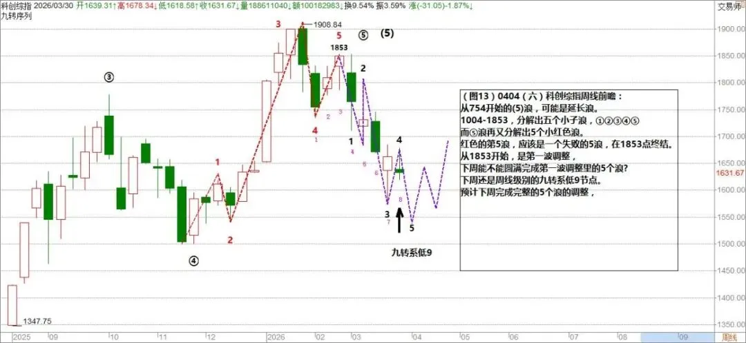 (图13)0404(六)下周科创综指周线前瞻: