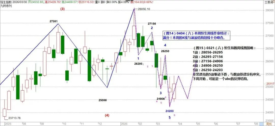 (图14)0404(六)本周恒生周线作业检讨: