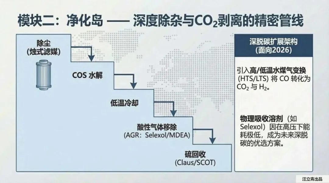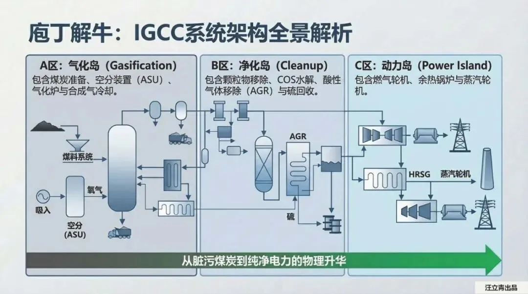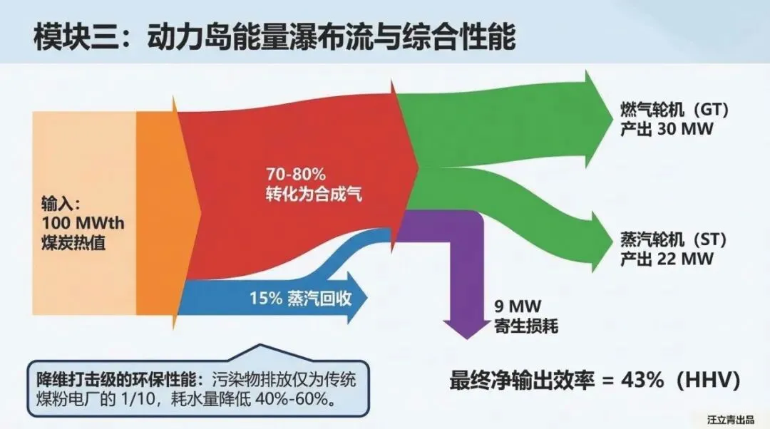 在重型化石能源体系中,基于煤/碳的整体煤气化联合循环(IGCC)构筑了核心压舱石。气化岛将煤炭在1000℃以上高温重构为合成气,配合动力岛能量瀑布流,最终净输出效率达43%。面对强力碳捕获政策,IGCC展现出降维级别的商业竞争力:引入90%碳捕集仅会导致系统效率小幅下降6%-10%,平均每吨CO2捕集成本被硬性锁定在20-30美元,远超传统电厂的改造经济性。