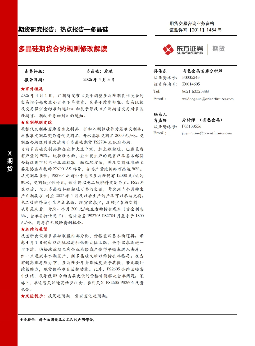 『研报』多晶硅热点报告:多晶硅期货合约规则修改解读