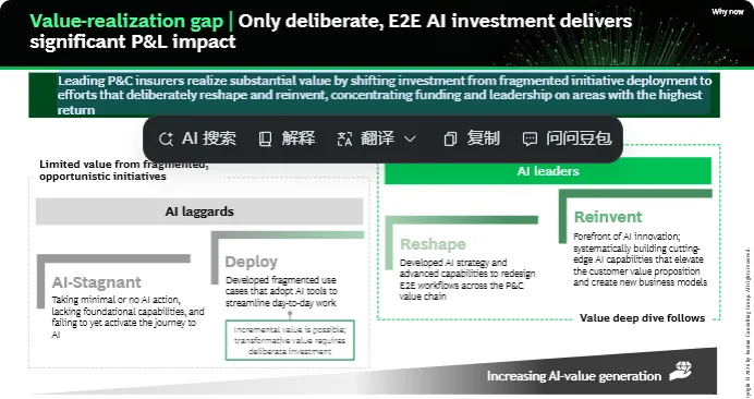 BCG报告的结论非常直白: 财险行业的AI窗口期正在关闭。