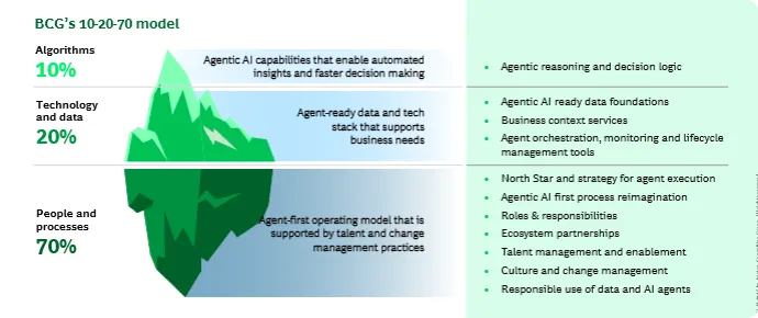 智能体AI(Agentic AI)是核心执行引擎 工作从"人协调"变成AI主导、结果驱动 人类只做:监督、复杂风险、问责、共情 数据、技术、流程为AI原生设计