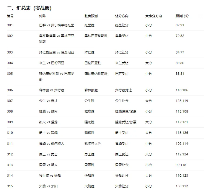 盘口只有雄鹿 -2.5,说明市场对雄鹿并不绝对信任。两队战绩分别是 31-47 与 19-59,名义上雄鹿更强,但本赛季稳定性一般。核心对位:这场更像“中下游对攻里选更有天赋的一边”,雄鹿终结点上限还是高一点。预测:雄鹿胜;让分建议放弃或轻看雄鹿;大小分选小;预测比分 113:108。309 热火 vs 猛龙