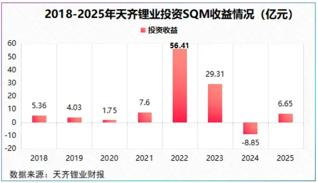 SQM则是天齐锂业的“现金牛”,自2018年参股以来,SQM已累计为天齐锂业贡献了超102亿元的投资收益,在2022年的锂价上行周期中,收益更是高达56.41亿元。