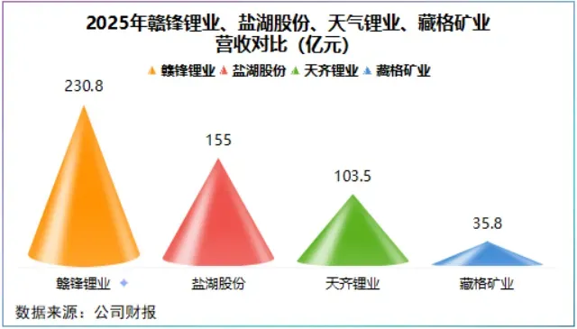2025年,赣锋锂业实现营收230.8亿元,同比增长22.08%,这一体量在天齐锂业、盐湖股份、藏格矿业中属于首位。