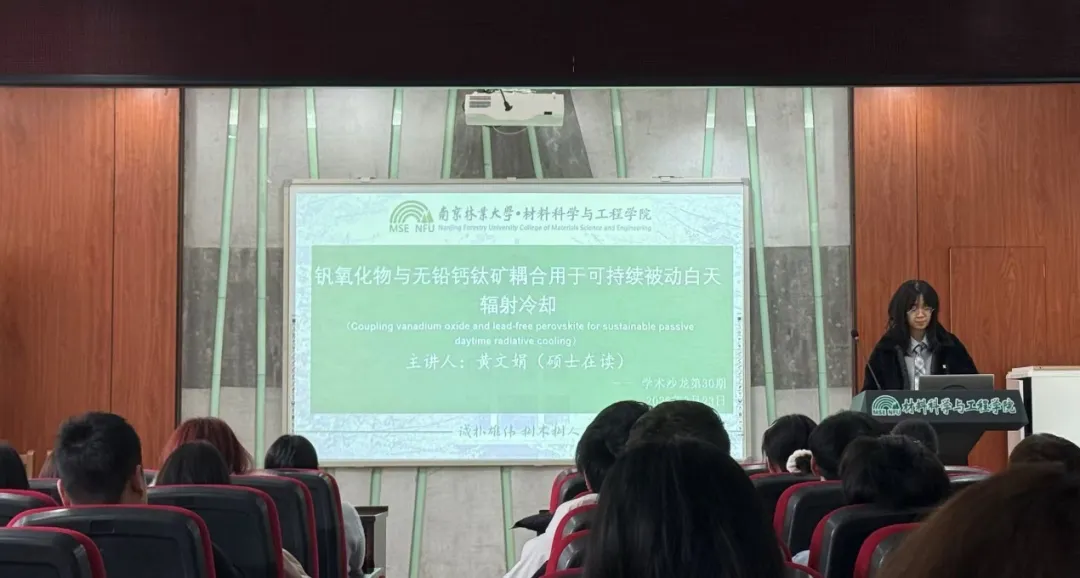 材料科学与工程学院于材料院 4211 顺利举办 “水杉” 学术沙龙活动。本次沙龙特邀 2024 级硕士研究生黄文娟、李月,分别围绕木基新材料、辐射制冷两大方向带来精彩学术分享,展现材苑学子的科研风采。