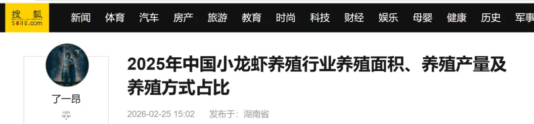 中国小龙虾产业经过20余年发展,已从要被清除的外来物种跃升为淡水养殖第四大品种(仅次于草鱼、鲢鱼、鳙鱼),2024年产量占全国淡水养殖总产量的9.76%。
