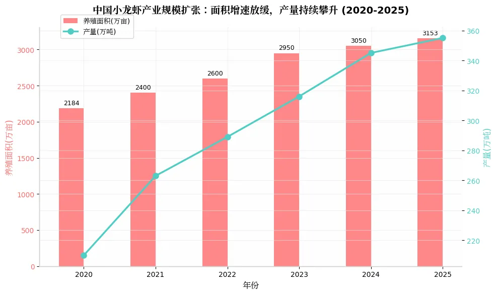 数据来源: 全国水产技术推广总站、中国水产学会《中国小龙虾产业发展报告(2025)》、农业农村部渔业渔政管理局、新华指数、中国水产流通与加工协会、潜江市小龙虾产业发展促进中心等。