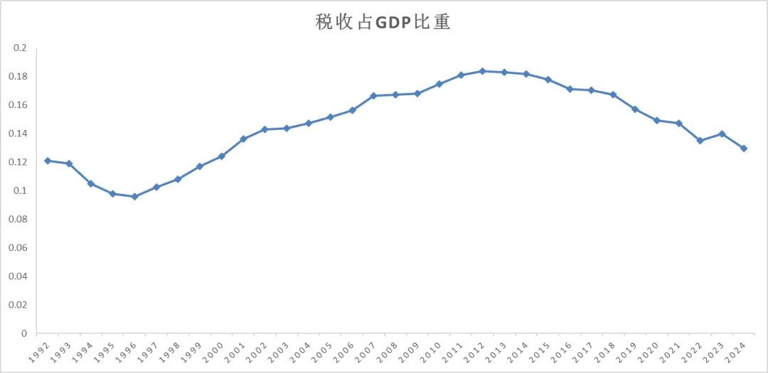 图2 1992-2024年我国税收占GDP比重