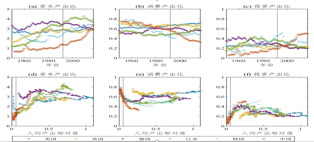 图5 中国与世界主要经济体核心加总变量的历史变动特征
