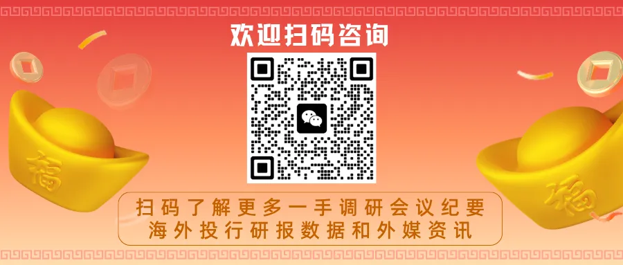 另外,更多一手调研会议纪要、海外投行研报数据和外媒资讯,欢迎扫码咨询。