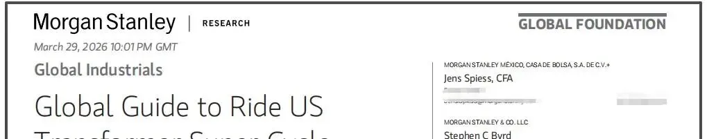 数据中心抢电、新能源上网、AI算力狂飙——市场盯着的都是性感故事。但摩根士丹利3月29日那份研报,捅破了一个更硬的事实:电网里最不起眼的变压器,交付周期已经从几个月拉到2–4年,价格涨了4–9倍,订单排到2028年。这不是普通涨价,这是"你给钱也得排队"的卖方市场。今天港股里跟电网设备沾边的标的在盘中明显强于大盘,背后逻辑不是炒概念,而是一个被低估的事实:电力系统真正的瓶颈,不在发电端,在传输端。本文会讲清三件事:为什么变压器突然从"基建配角"变成"供不应求";这轮周期为什么不会像光伏一样快速过剩;以及,这条线索在港股怎么映射。