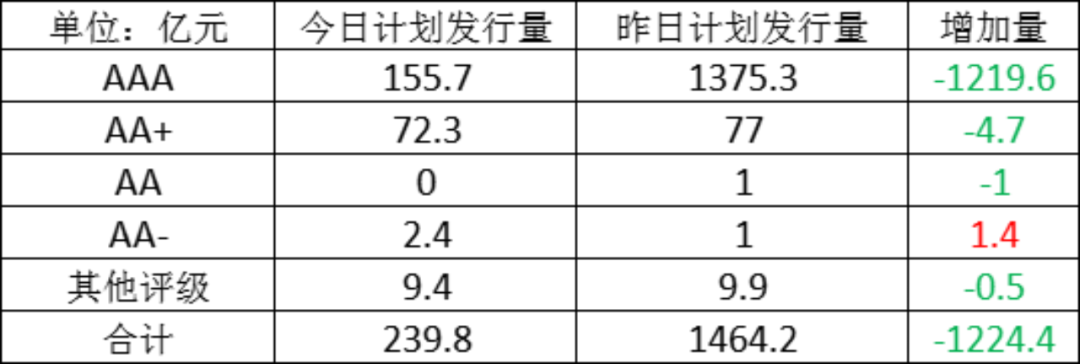 今日存单计划发行量规239.8亿元,较上一工作日计划发行量大幅减少,减少了1224.4亿元。