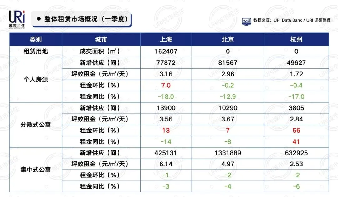 URI认为,出现该现象的原因是,一方面由于一季度为传统春节淡季,另一方面分散式房源向集中式及保障性体系加速转移。