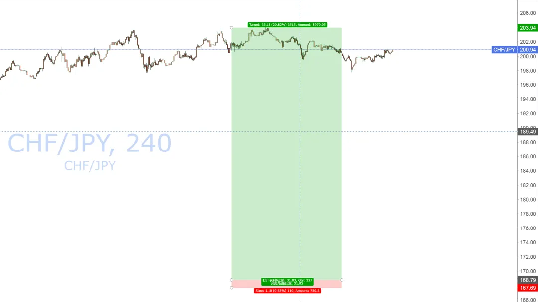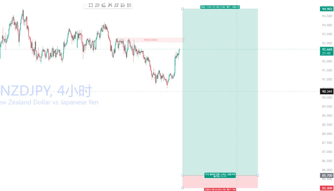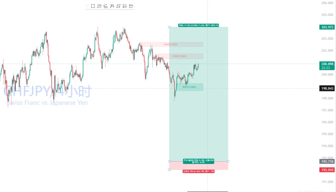 美元兑日元(USDJPY):已40:1减仓,尾仓止损维持原位瑞郎兑日元(CHFJPY):已31:1减仓,尾仓止损移动至187.00英镑兑日元(GBPJPY):已20:1减仓,尾仓止损维持原位欧元兑日元(EURJPY):已18:1减仓,尾仓止损移动至174.50纽元兑日元(NZDJPY):已15:1减仓,尾仓止损维持原位瑞郎兑日元(CHFJPY):已16:1减仓,尾仓止损维持原位纽元兑日元(NZDJPY):已7:1减仓,尾仓止损维持原位加元兑日元(CADJPY):已5:1减仓,尾仓止损维持原位英镑兑美元(GBPUSD):已4:1减仓,尾仓止损维持原位澳元兑加元(AUDCAD):已1:1减仓,尾仓触发止损离场