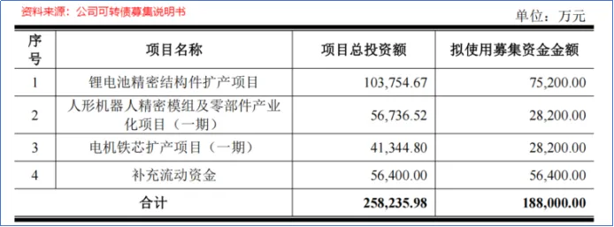 4月3日,公司发布公告拟募资不超过18.8亿元,其中超2.8亿元将直接投入人形机器人项目。