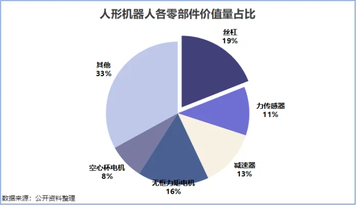 丝杠是一种将旋转运动转化为直线运动的机械部件。人形机器人关节驱动的核心部件,占零部件总成本的19%,价值量较高。