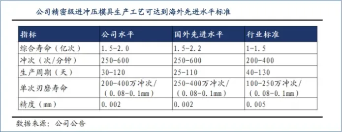 目前,公司生产的精密级进冲压模具实现的精度已达到0.002mm,高于行业标准。