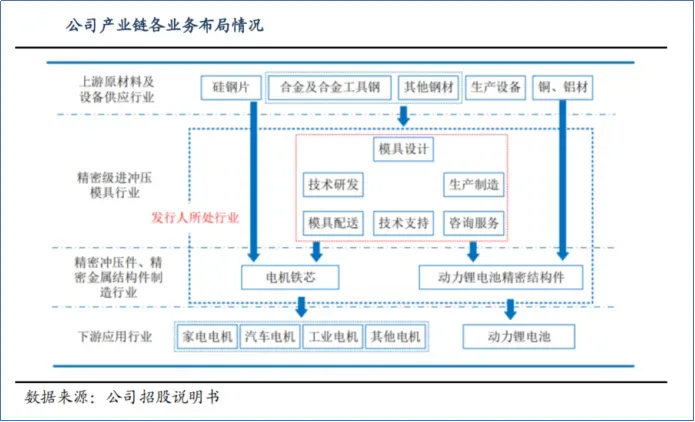 震裕科技以钢针等冲压模具起家,并纵向布局了电机铁芯和锂电结构件两大精密部件。