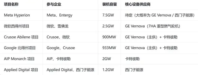 可重点关注具备全链条能力的设备厂商:GE Vernova、西门子能源、卡特彼勒。