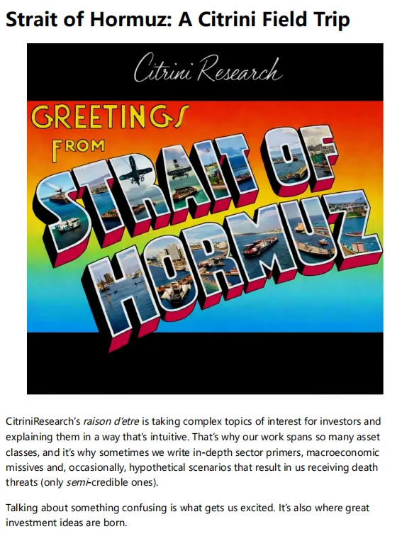 报告名称:霍尔木兹实地调研(文末附全文PDF) 出 品 方:Citrini Research