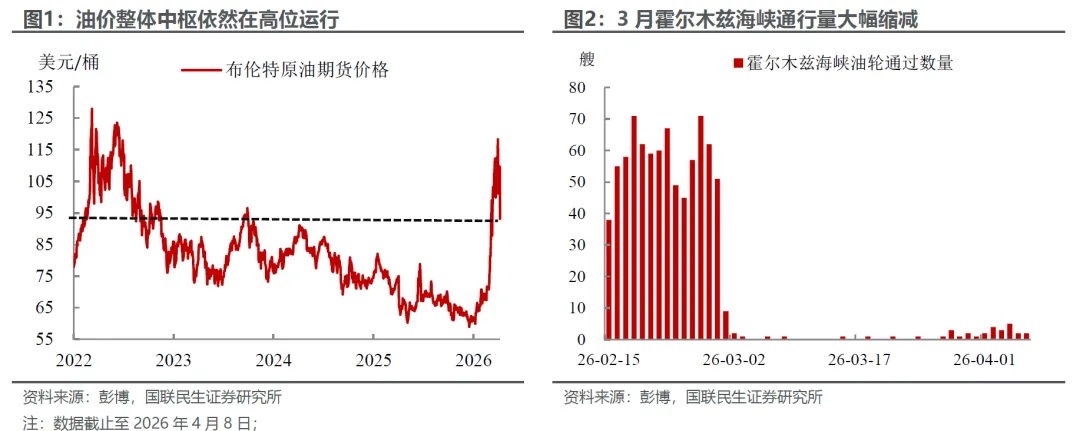 本轮供给端冲击带来的价格上涨具有一定黏性,后续修复或难以“一蹴而就”:一方面,尽管美伊已达成临时停火并即将开启谈判,但地缘矛盾并未根本化解,加之相关表态反复,后续局势仍存不确定性;另一方面,即便冲突彻底结束,霍尔木兹海峡航运恢复尚需时日,受损的能源产区产能重建也需数月之久,区域能源供给、物流通道仍将持续受扰,短期供给约束难以快速解除。