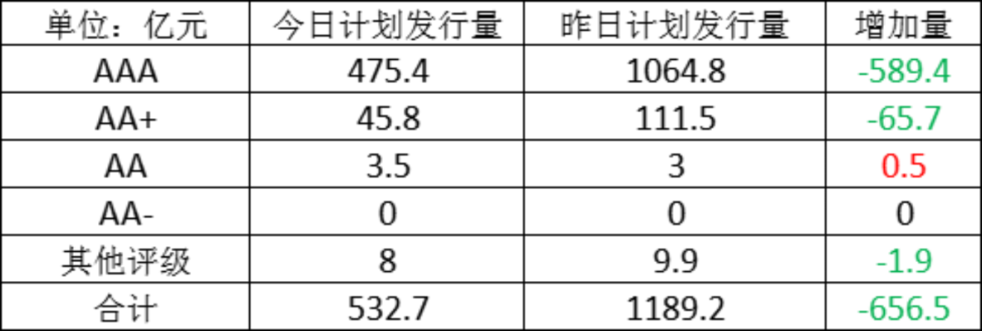 今日存单计划发行量规532.7亿元,较上一工作日计划发行量大幅减少,减少了656.5亿元。