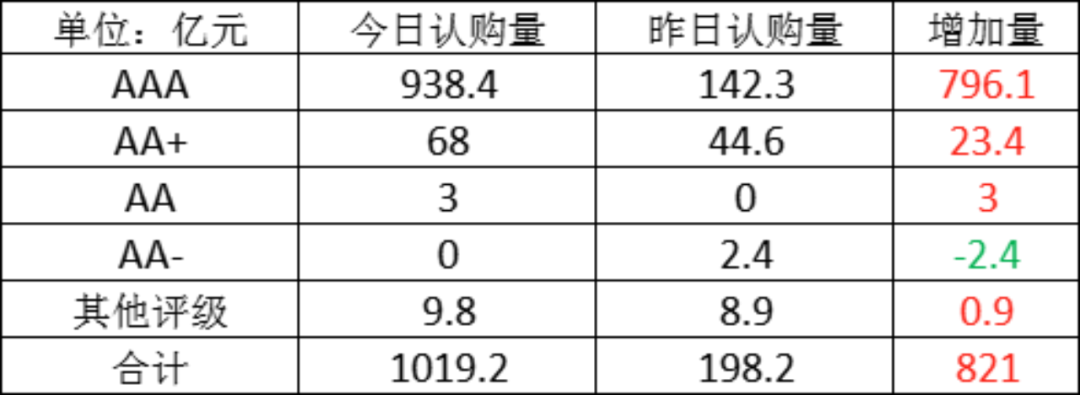今日存单认购量规模1019.2亿元,较上一工作日认购量大幅增加,增加了821亿元。