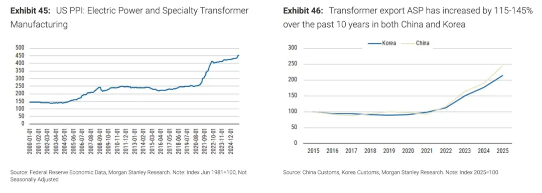 变压器平均售价(ASP)仍远高于2020年前水平。自2015年以来,中国和韩国变压器出口ASP上涨115%–145%。