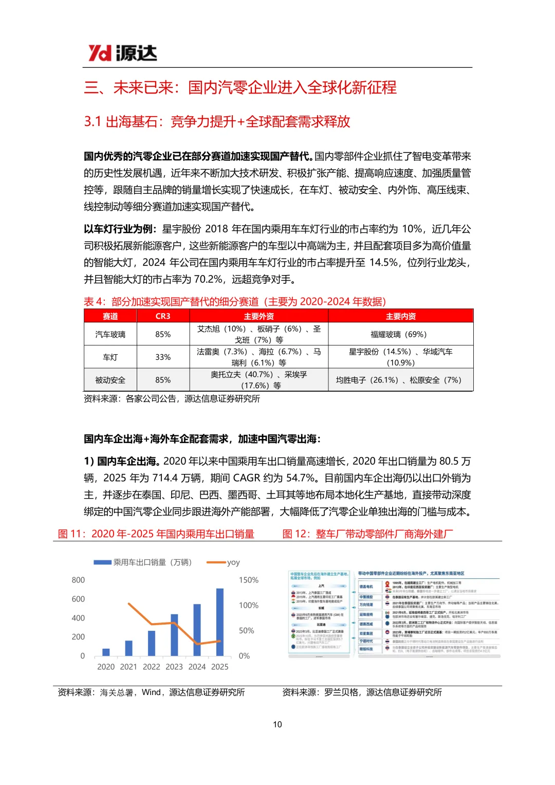 国内汽零企业这几年跟着自主品牌高速成长,但自主品牌本身已经在往外跑了。材料里给到的数据是,2025 年中国整车出口 714.4 万辆,2020 到 2025 年 CAGR 约 54.7%。车企出去,零部件要么跟上,要么掉队。