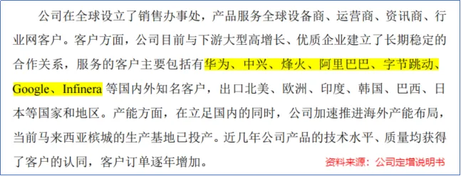 凭借下游需求增长以及全面的产品布局,光迅科技与华为、中兴、烽火通信、阿里巴巴、谷歌等国内外大厂建立了合作关系。