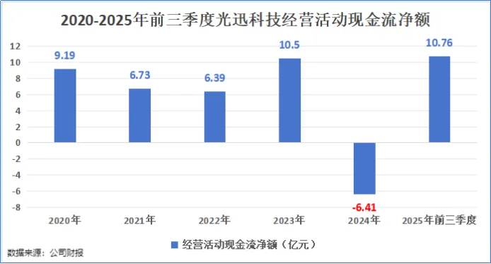 2024年,光迅科技的经营活动现金流净额由正转负,为-6.41亿元。