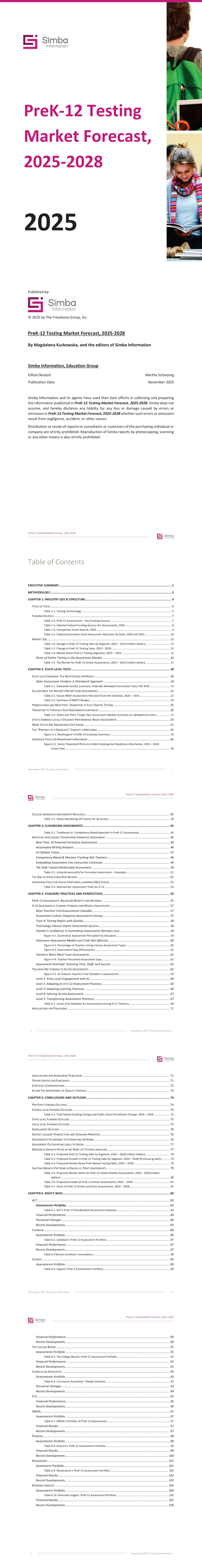 Simba - PreK-12 Testing Market Forecast, 2025-2028