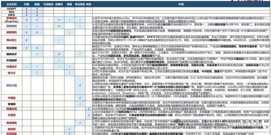 (1)光芯片。标的:中际旭创(硅光芯片)、新易盛(硅光芯片)、源杰科技(EML+CW)、华工科技(EML+硅光芯片+CW+TFLN);受益标的:长光华芯(EML+CW)、光迅科技(EML+CW+TFLN)、永鼎股份(EML+CW)、仕佳光子(CW+AWG)、东山精密(EML+硅光芯片+CW)、光库科技(TFLN)、安孚科技(硅光异质集成TFLN)、Lumentum、Coherent、Broadcom、Marvell、住友电工、Tower半导体等。