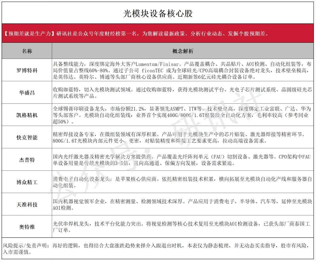 逻辑:AI 光模块上游器件、激光芯片、CPO 共通逻辑