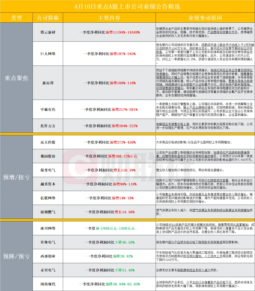 ②盘点一季度净利润同比预增超500%的A股上市公司名单及业绩变动原因(附表)。